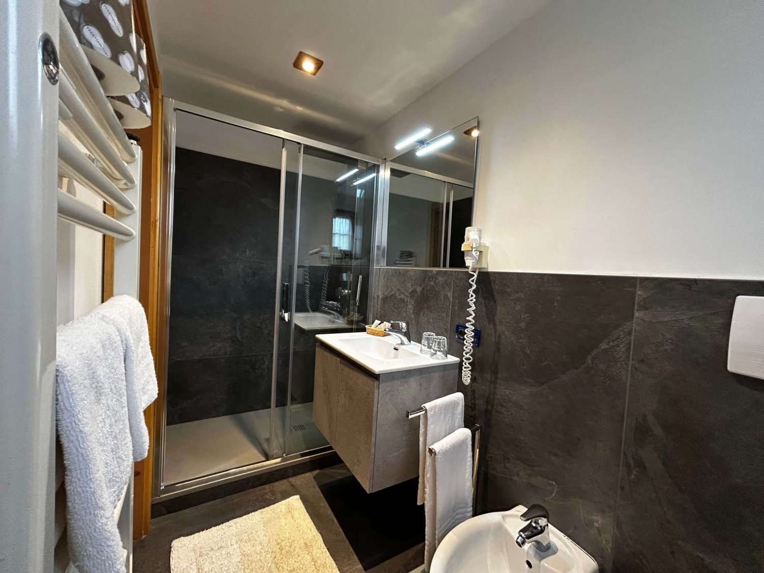 Ogni stanza, progettata per il massimo comfort, unisce materiali naturali e dettagli ricercati: il profumo del legno, morbidi tessuti dalle tonalità avvolgenti e un’atmosfera intima che invita al relax. I vostri amici a quattro zampe sono i benvenuti in hotel! Chiediamo solo di non portarli con sé nella sala colazione e nella sala da pranzo. È previsto un supplemento di €10,00 al giorno.